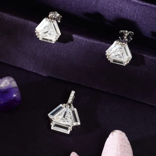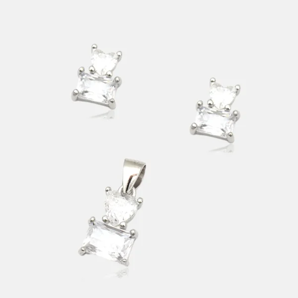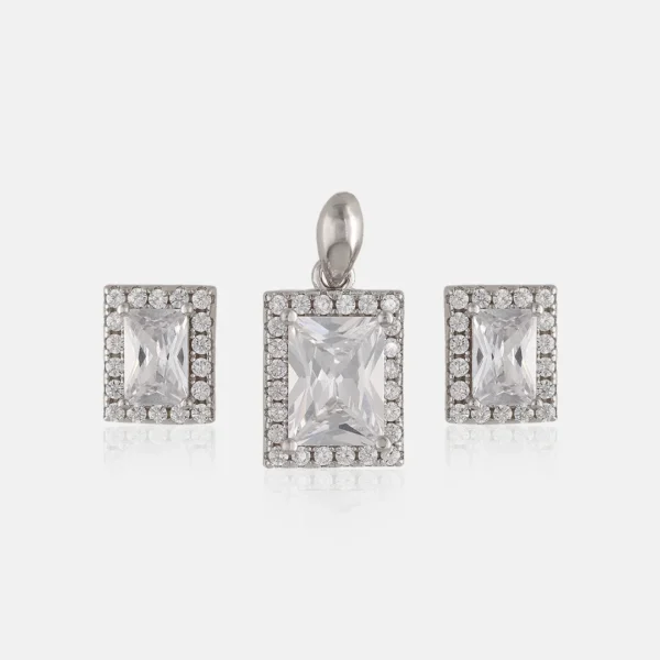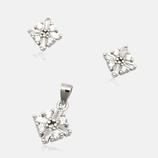 925 Sterling Silver Pendant & Earing With Baguette And Hexagon Design For Womens