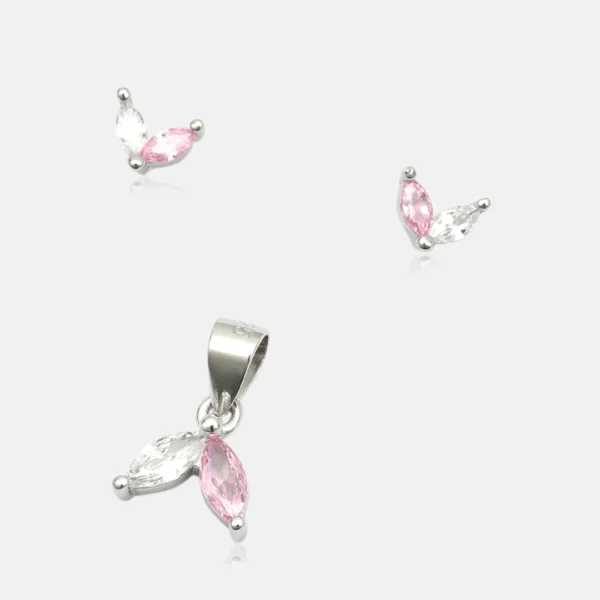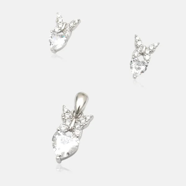 925 Sterling Silver Pendant & Earing With Rose Gold Butterfly Heart Design For Womens