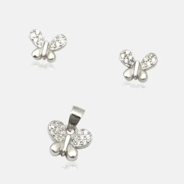 Pure Silver 925 Butterfly Pendant With Earring For Women’s