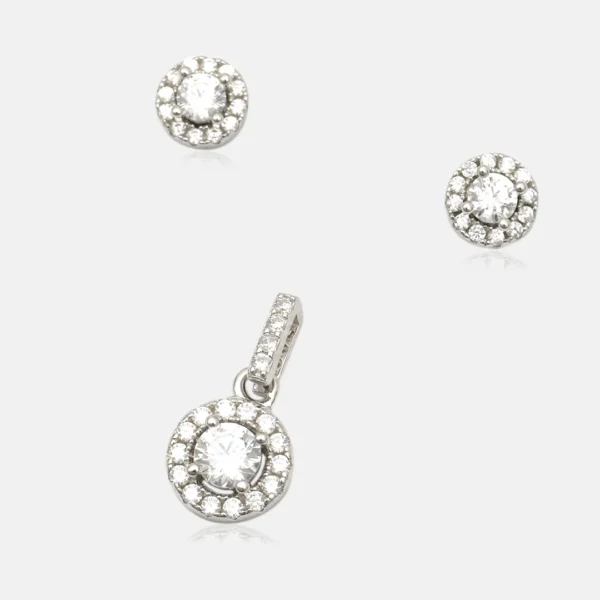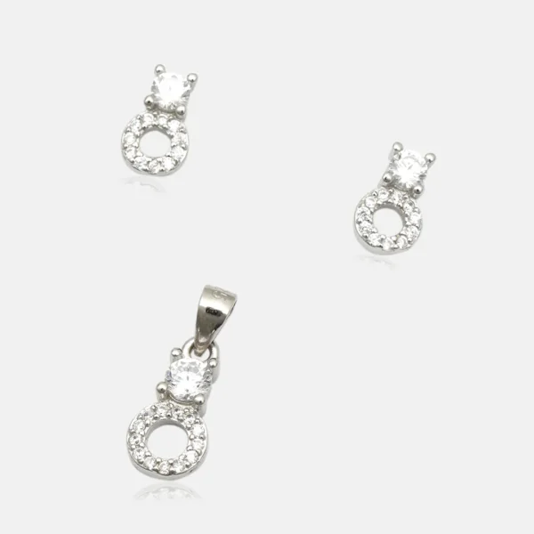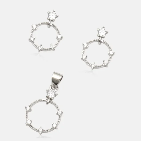 Pure Silver 925 Circle Shape Stones Studded Pendant With Earring For Women’s