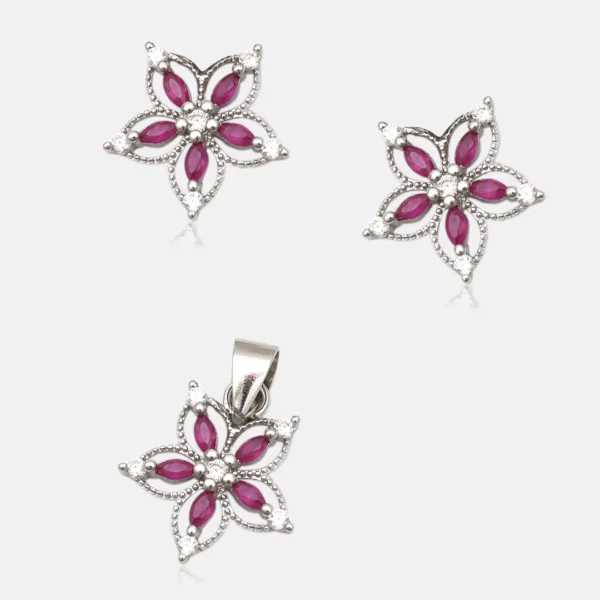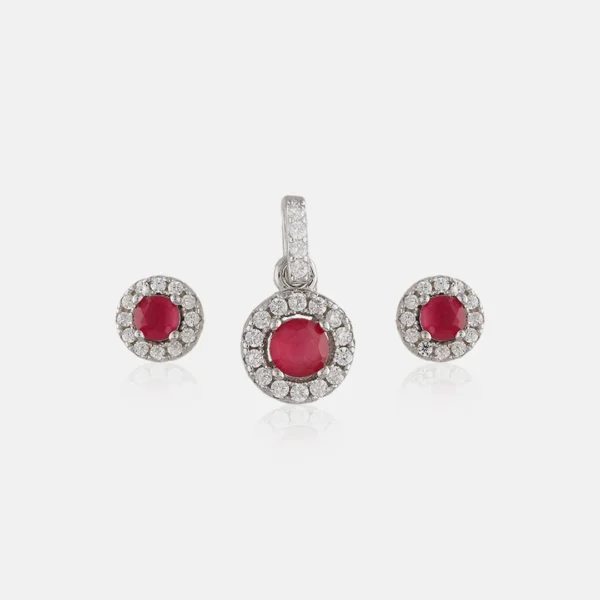 Pure Silver 925 Maroon Stone Pendant With Earring For Women’s