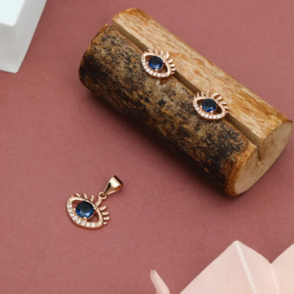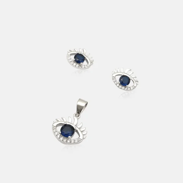 Pure Silver 925 Evil Eye Pendant With Earring For Women’s