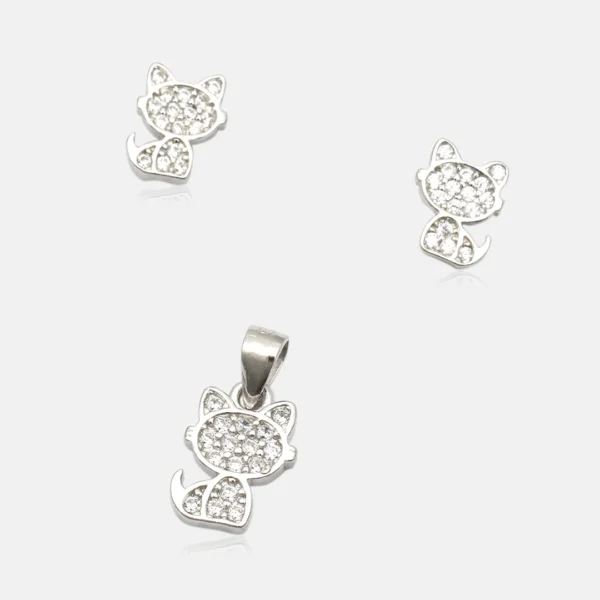 Pure Silver 925 Kitty Pendant With Earring For Women’s