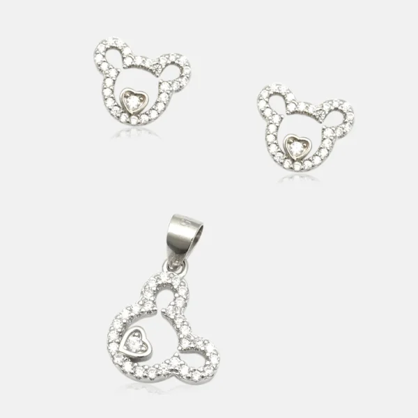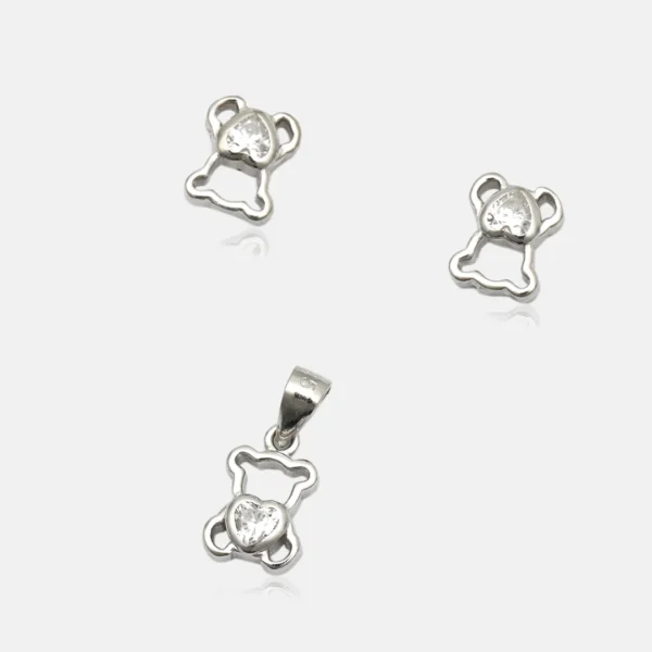 Pure Silver 925 Teddy Pendant With Earring For Women’s