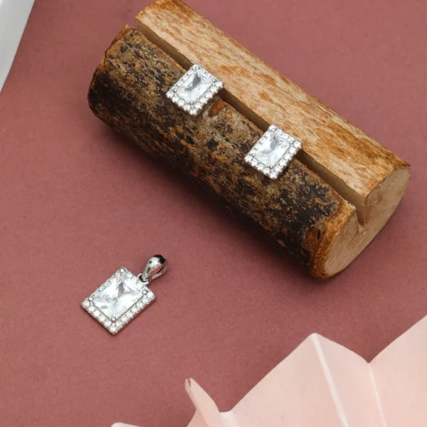 Pure Silver 925 Fresh Square Shape Stone Studded Pendant With Earirng For Women’s