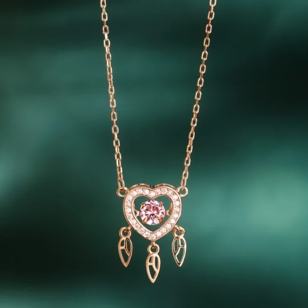 925 Sterling Silver Chain With Heart And Feather With Rose Gold Designs For Womens