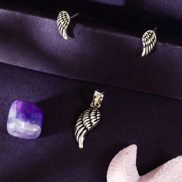 925 Sterling Silver Pendant & Earing With Angel Wing Design For Womens