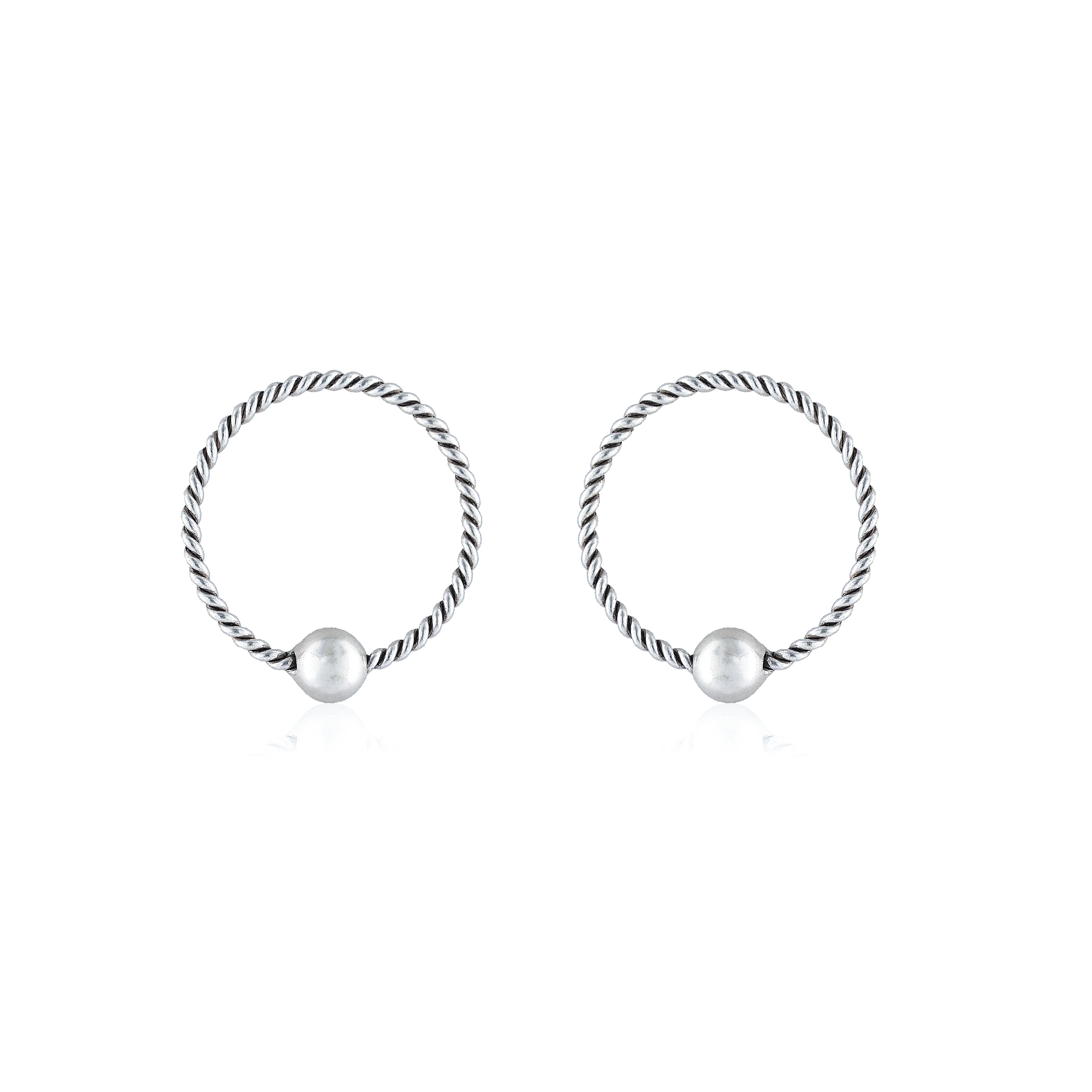 925 Sterling Silver Bali Twisted Single Ball Design For Womens