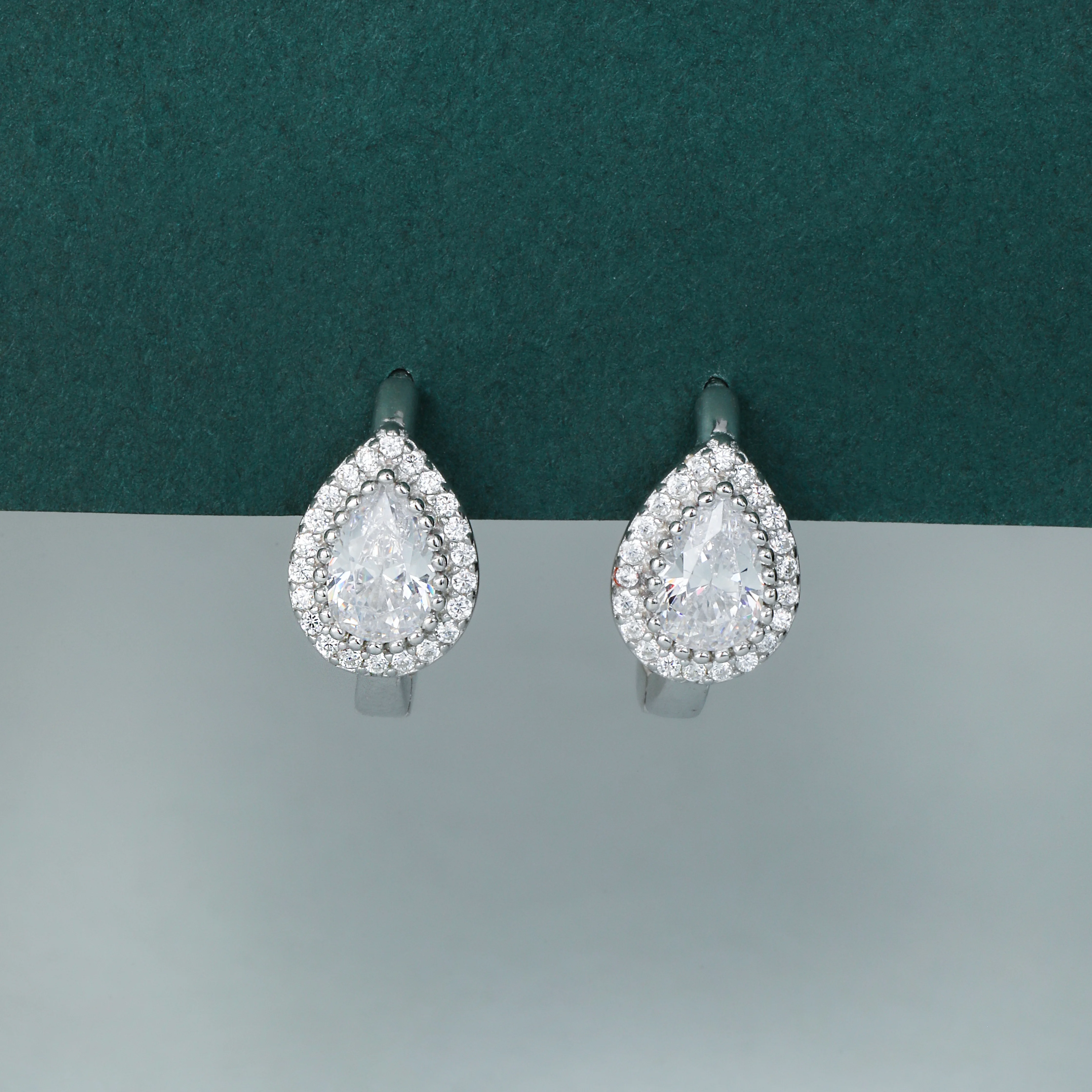 925 Sterling Silver Bali With Drop Shape & Stone Studded Design For Womens