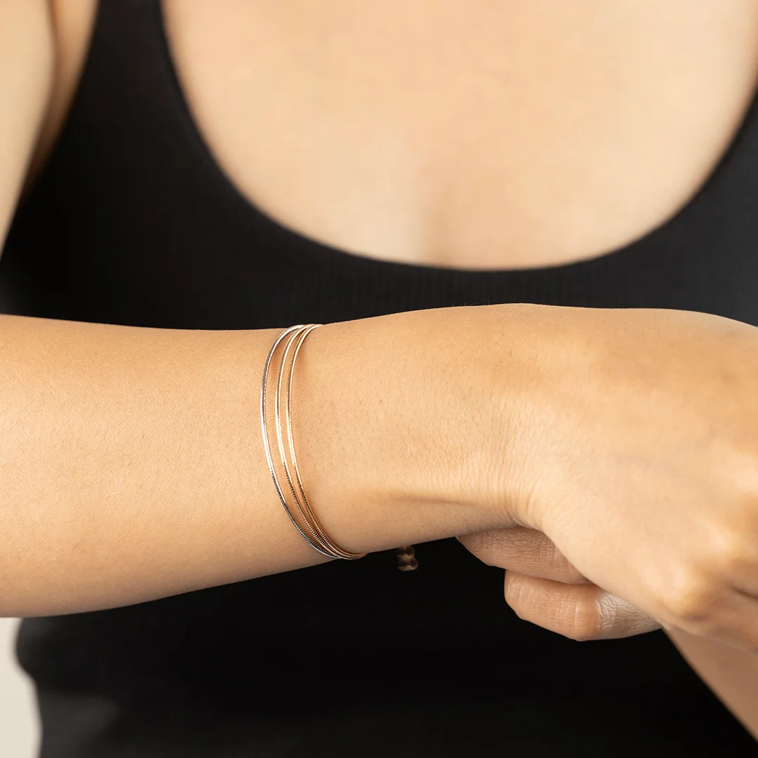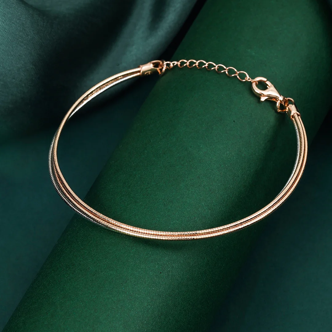 925 Sterling Silver Bracelet With 3 Layer Circle Shape Design For Womens With Rose Gold Polish