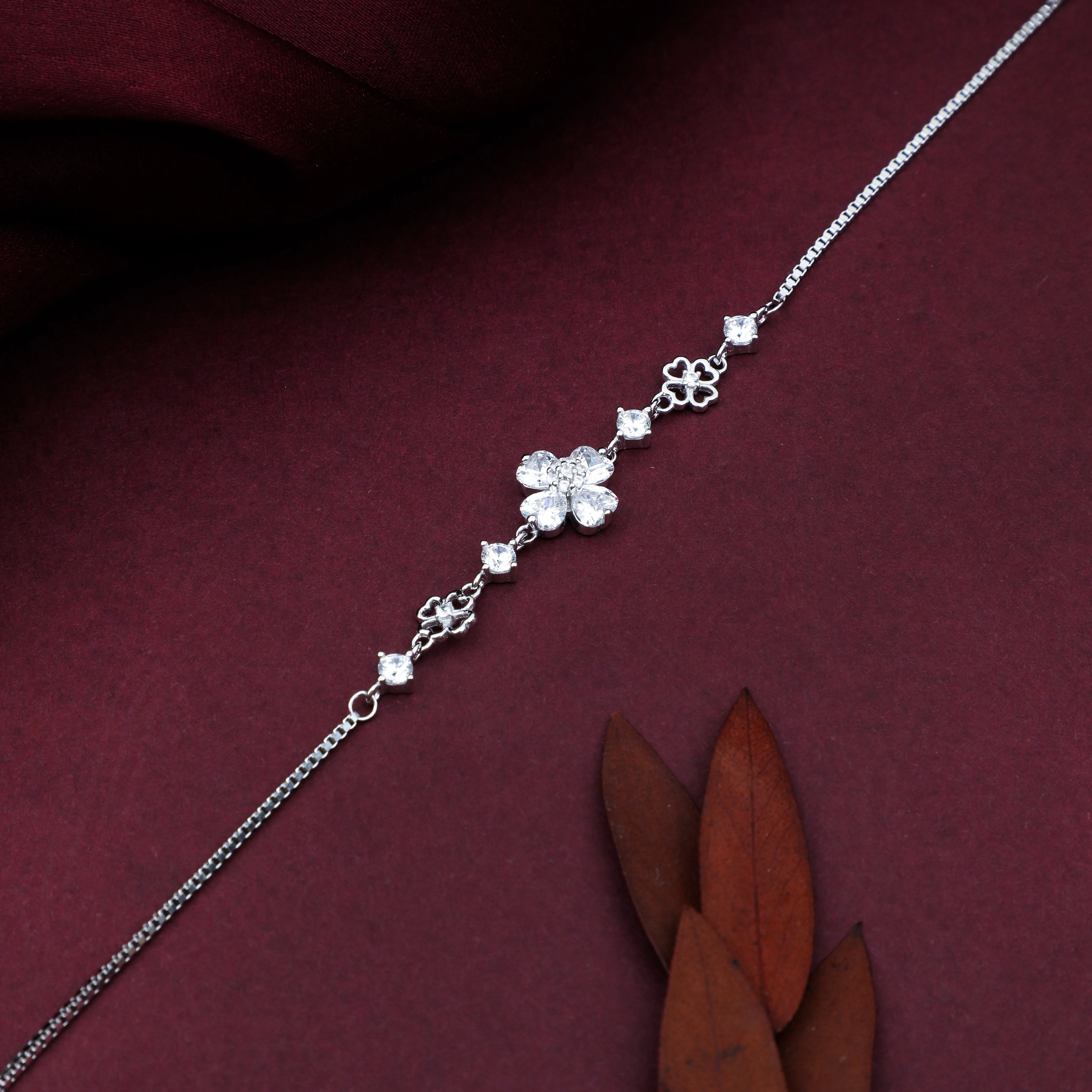 Be the first to review “925 Sterling Silver Bracelet With Stone Studded Flowers Design For Womens” Cancel reply