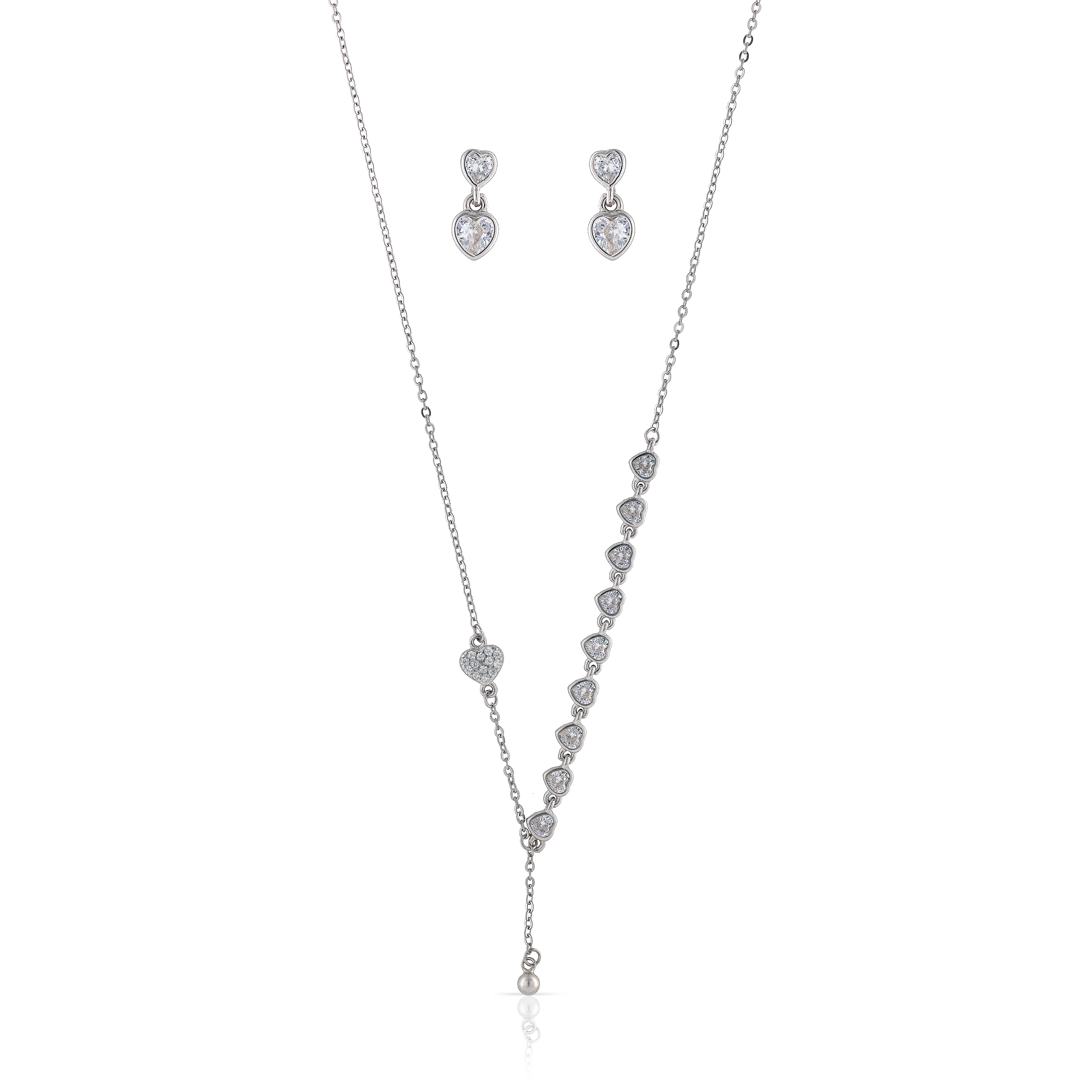 925 Sterling Silver Chain With Heart Shape Earings For Womens