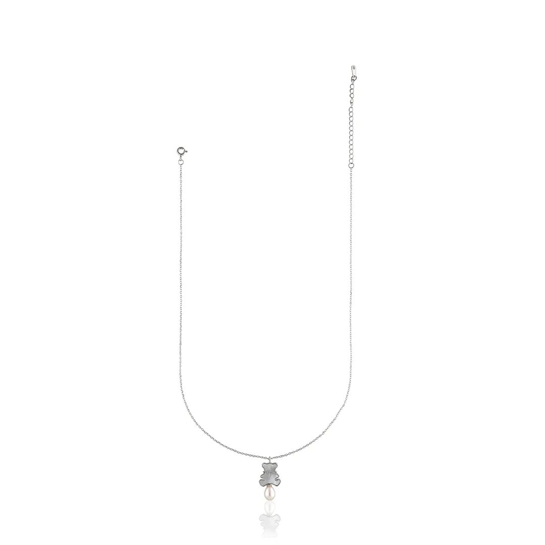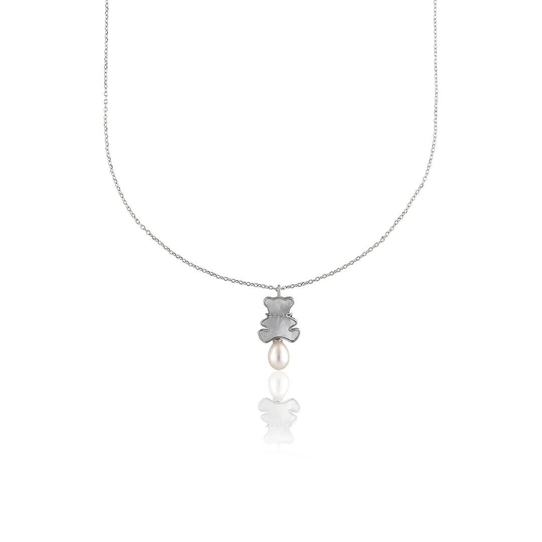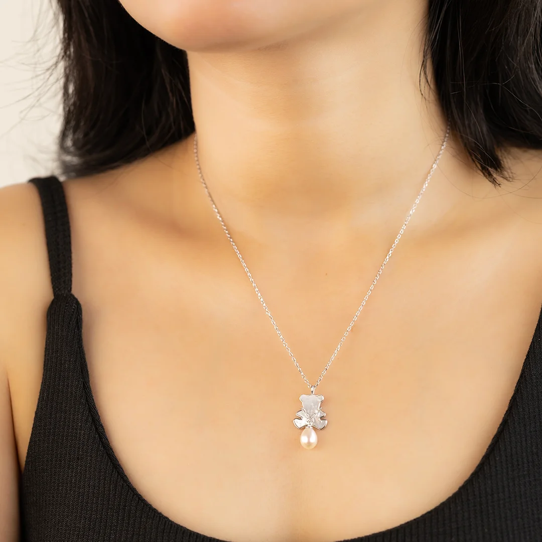925 Sterling Silver Chain With Teddy & Pearl Pendant For Womens