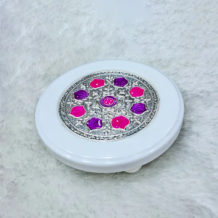 Be the first to review “925 Sterling Silver Coloured Round Chowki (Aasan) For God Murti” Cancel reply
