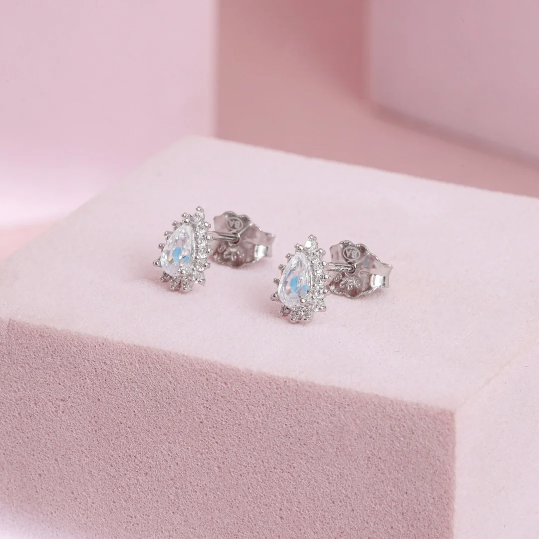 925 Sterling Silver Earings With Silver Pear Cut Design For Womens