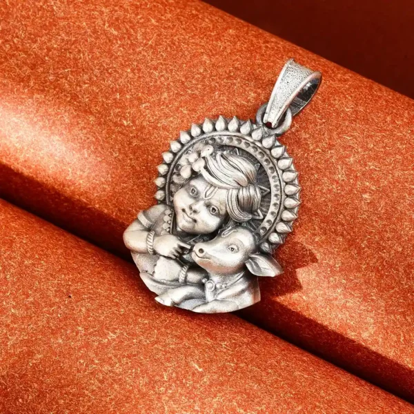 Pure Sterling Silver 925 Bal krishna With Cow Pendant For Women, Men & Kids