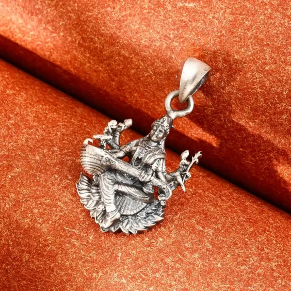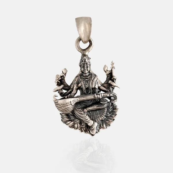 Pure Sterling Silver 925 Maa Saraswati Pendant For Women, Men & Kids