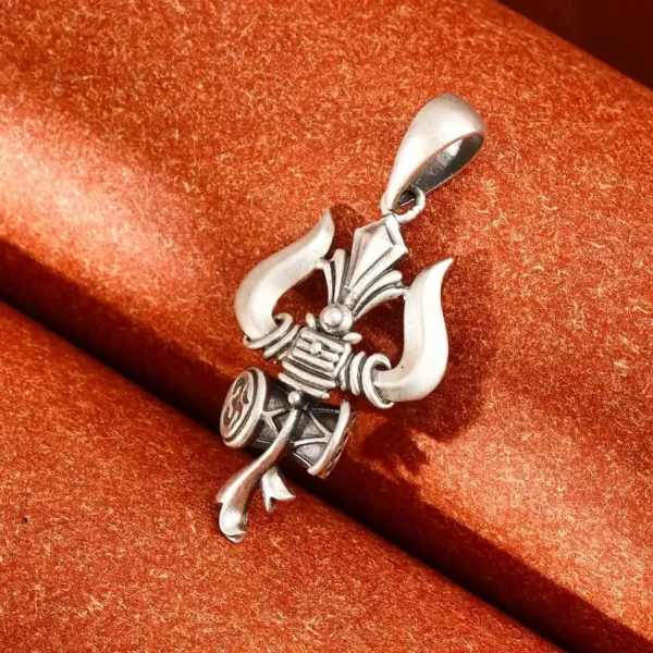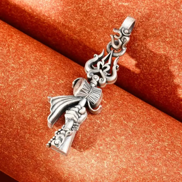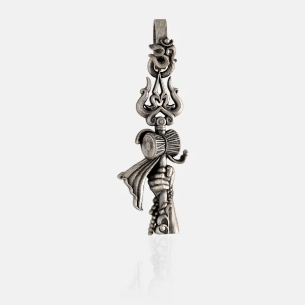 Pure Sterling Silver 925 Mahadev Dumroo & Trishul Pendant For Women, Men & Kids