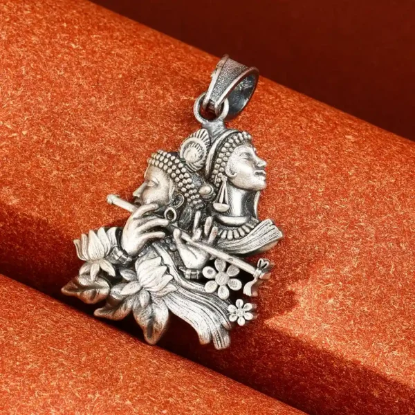 Pure Sterling Silver 925 Shree Krishna With Radha Pendant For Women, Men & Kids