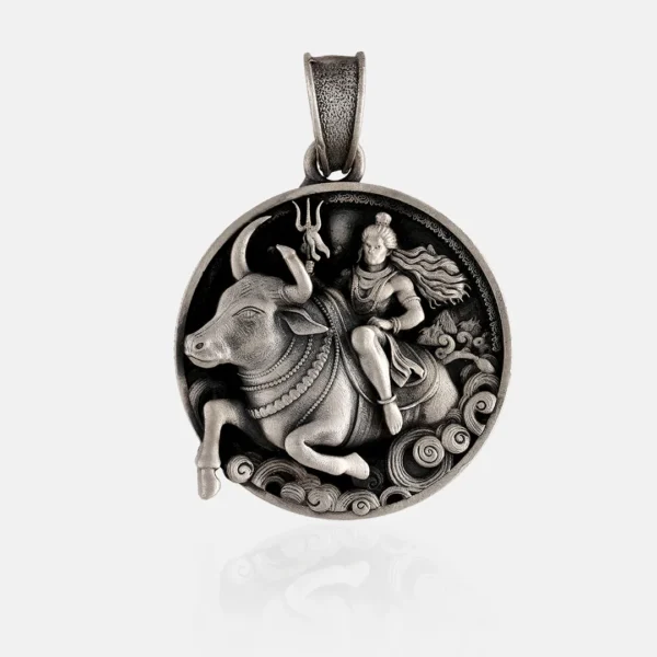 Pure Sterling Silver 925 Shree Shiv Ji In Her Nandi Pendant For Women, Men & Kids