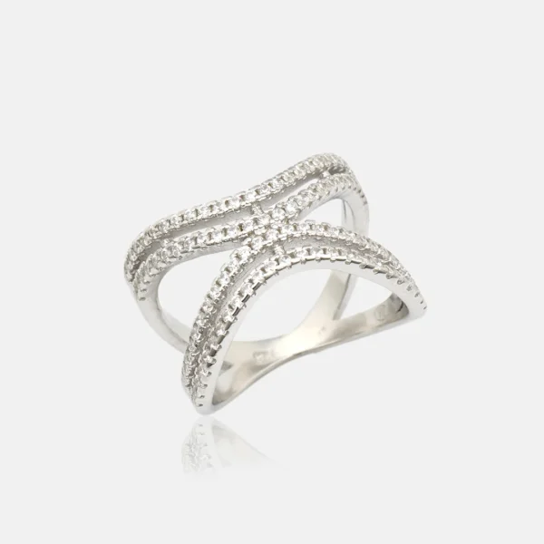 Silver 925 Single Zig-Zag Stone Band Women’s Ring