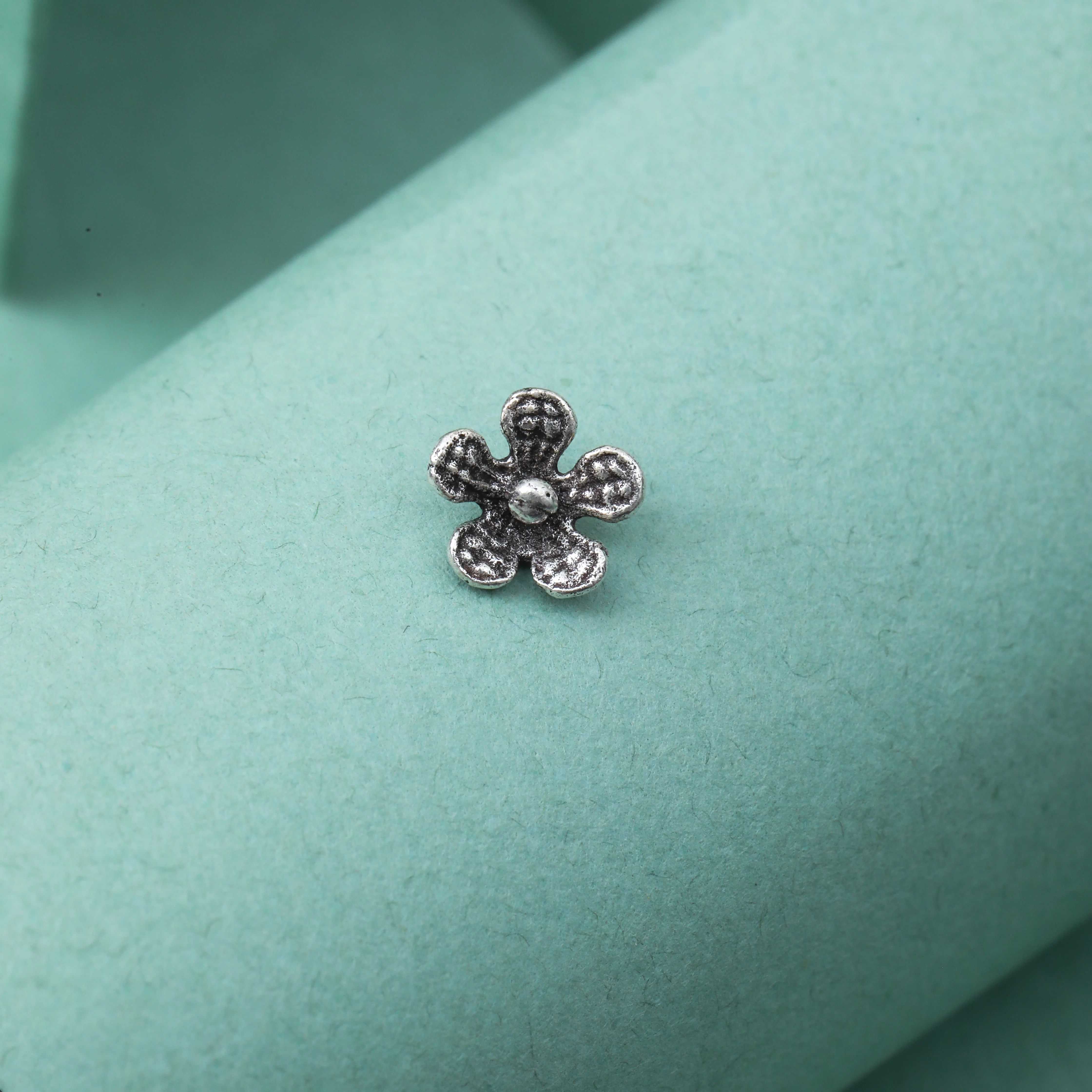 925 Sterling Silver Nosepin With Oxidized Flower Design For Womens
