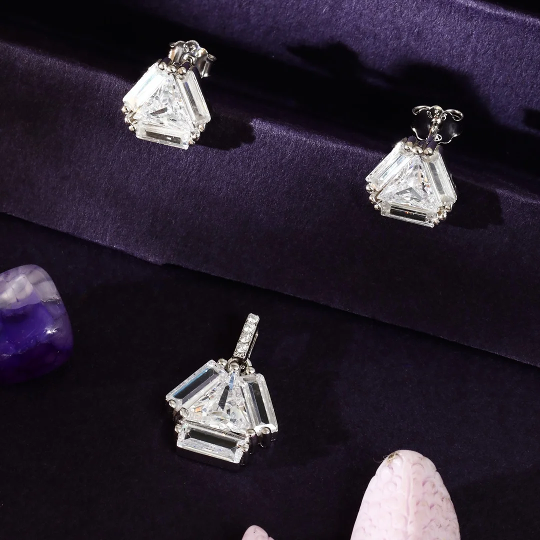 925 Sterling Silver Pendant & Earing With Modern Geomatric Design For Womens