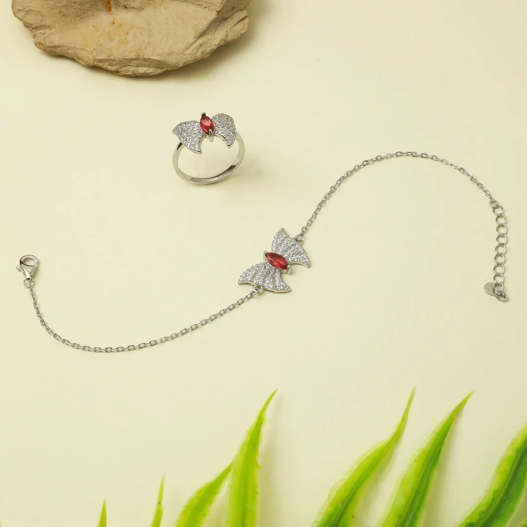 925 Sterling Silver Ring & Bracelet Set On Butterfly Design For Womens