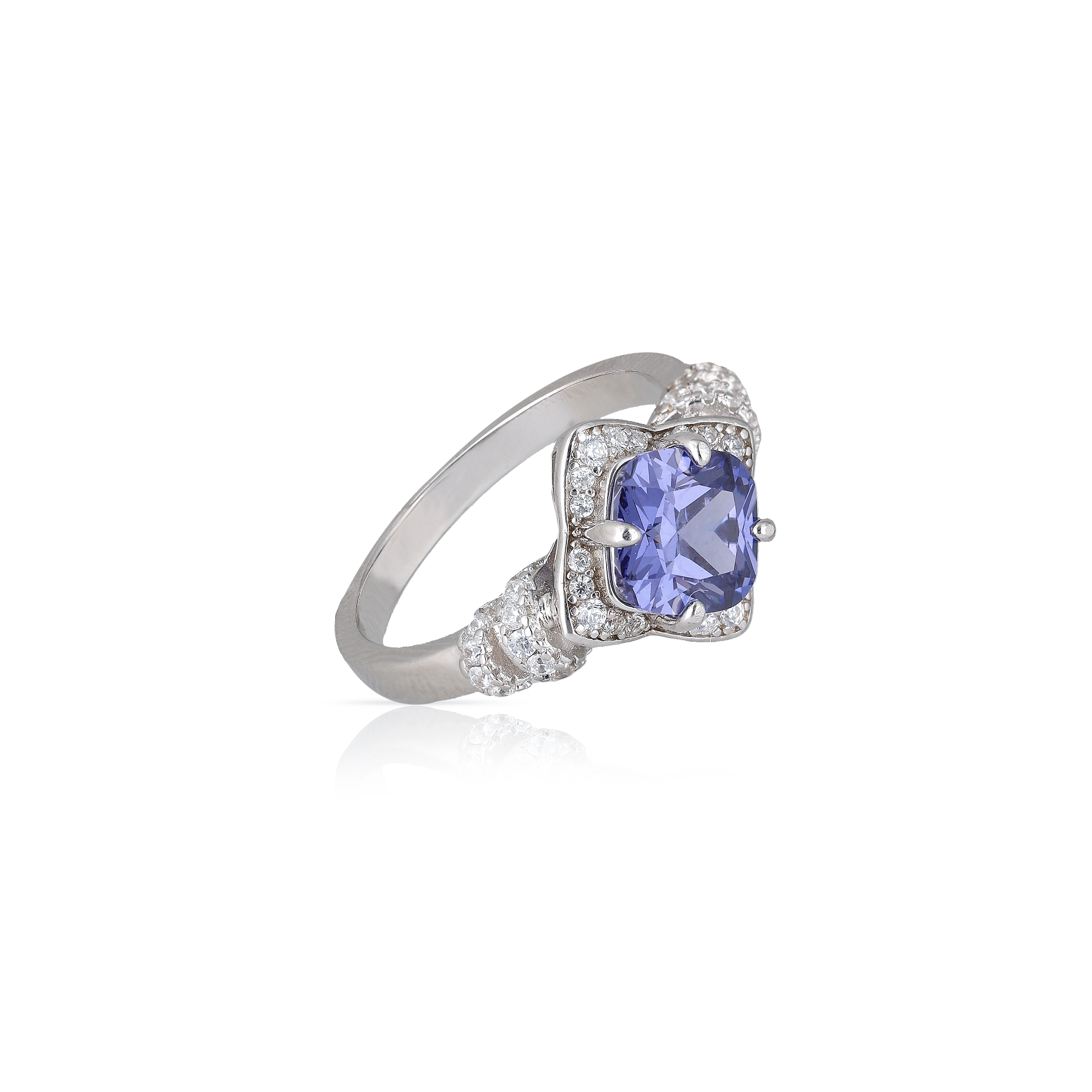 925 Sterling Silver Ring With Blue Sapphire Stone Studded Design For Womens