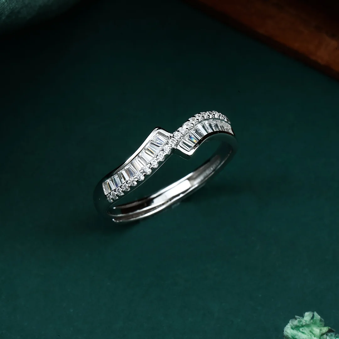 Silver 925 Single Zig-Zag Stone Band Women’s Ring