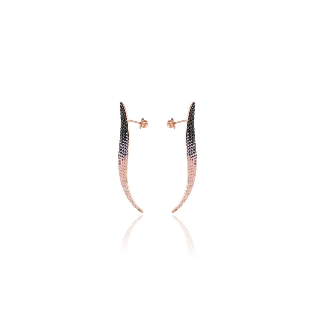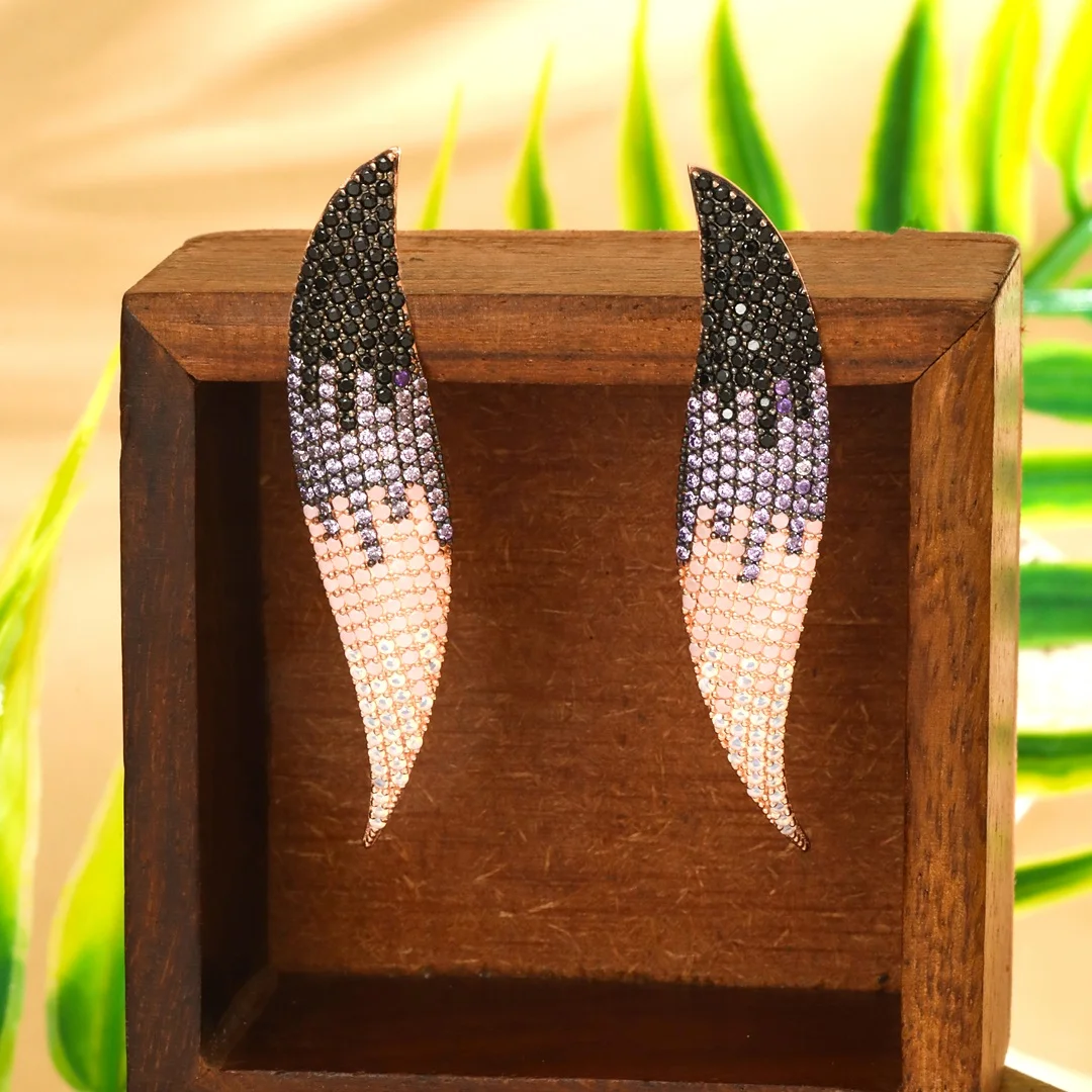 925 Sterling Silver Rose Gold Black Ombre Feather Earings For Womens