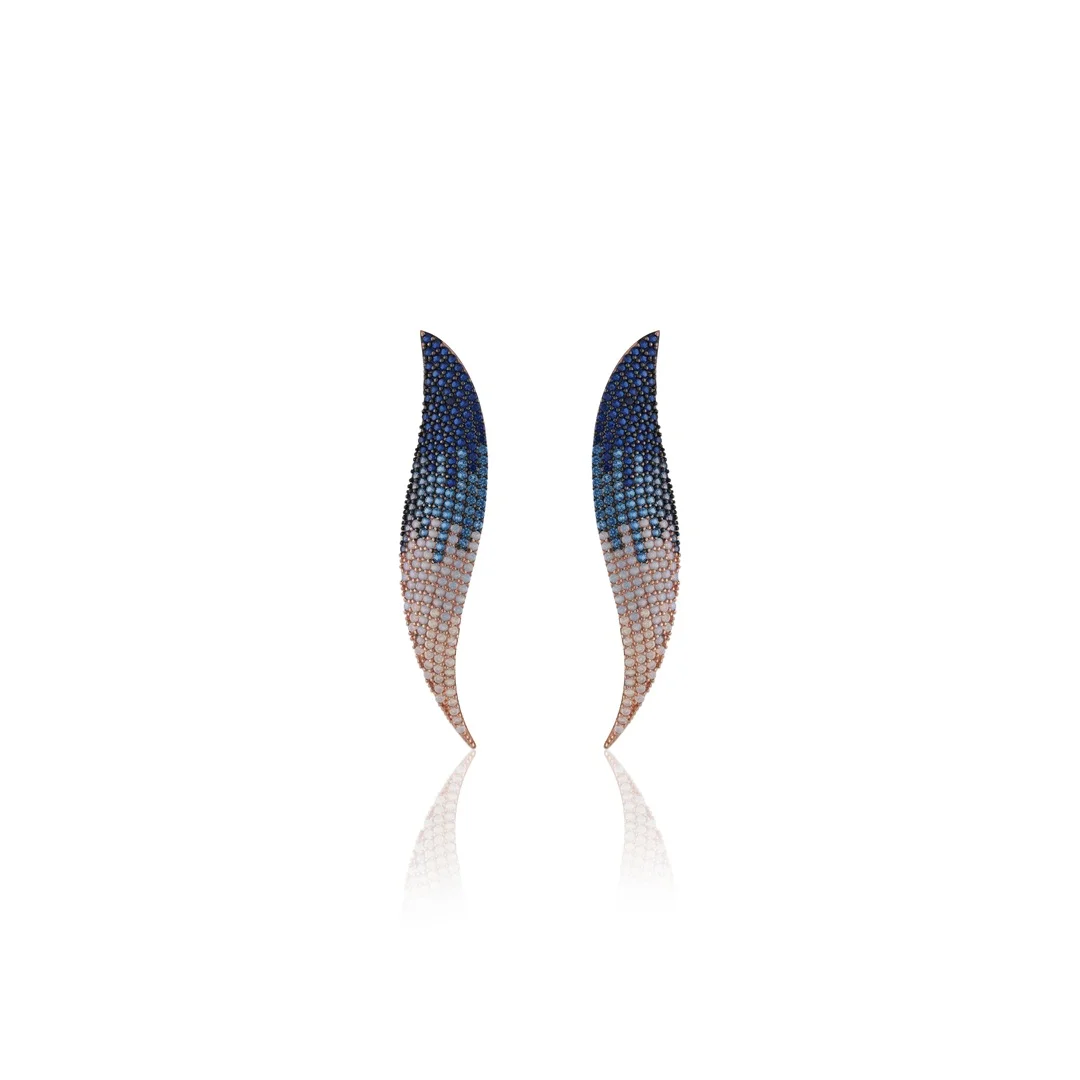 925 Sterling Silver Rose Gold Blue Casacade Drop Earings For Womens