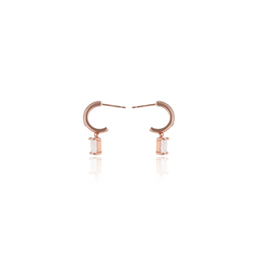 925 Sterling Silver Rose Gold Crystal Dangle Earings For Womens