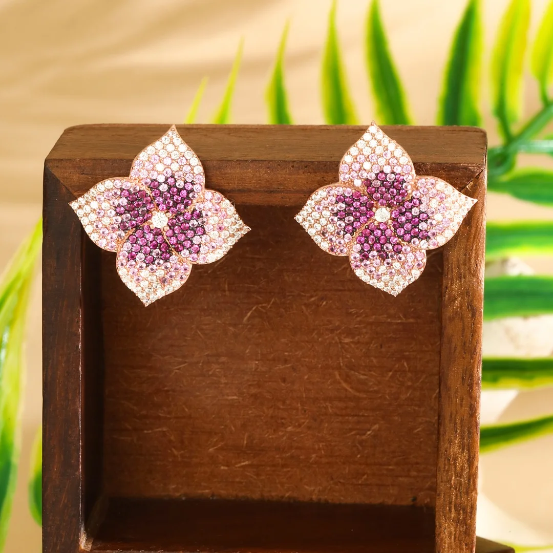 925 Sterling Silver Rose Gold Four-Petal Flower Earings For Womens