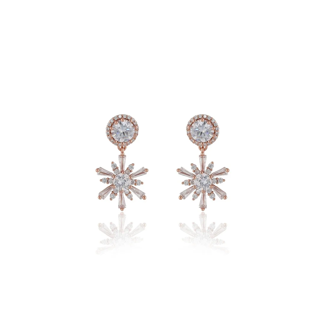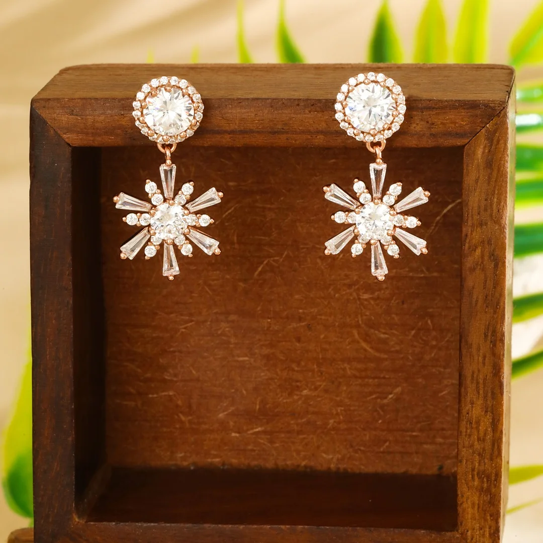 925 Sterling Silver Rose Gold Pave Stardust Drop Earings For Womens