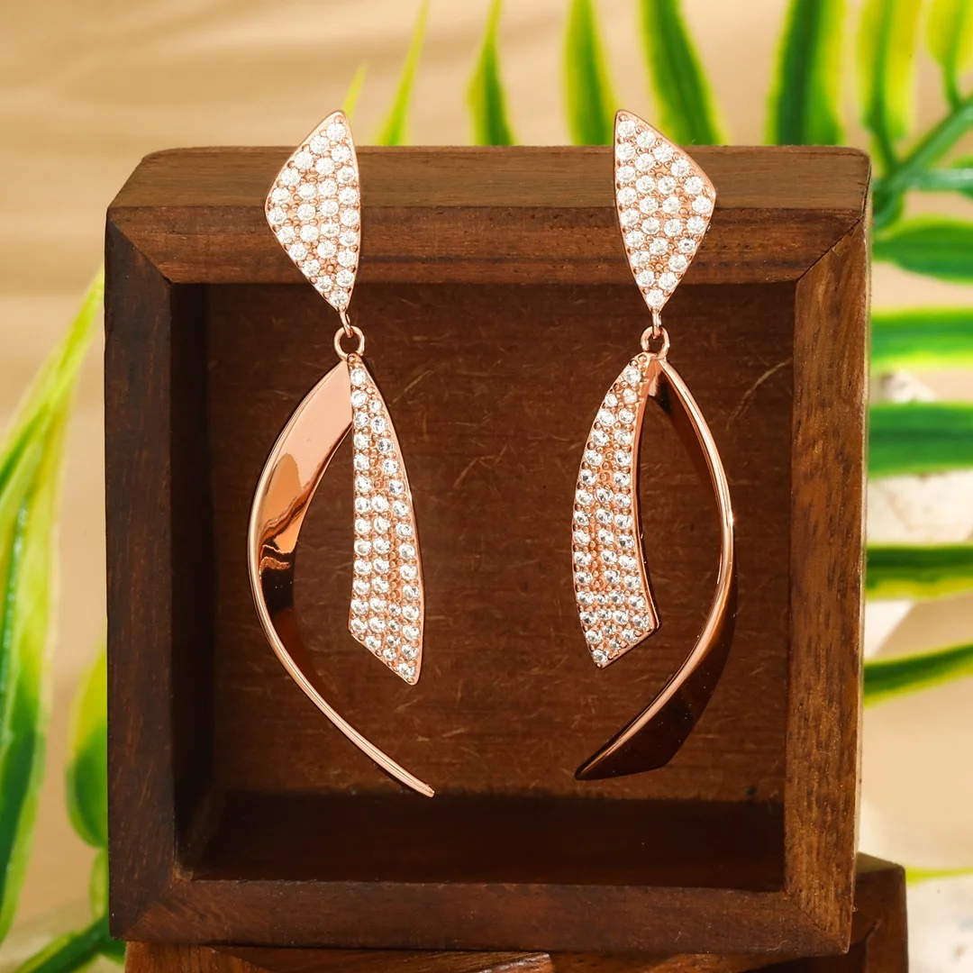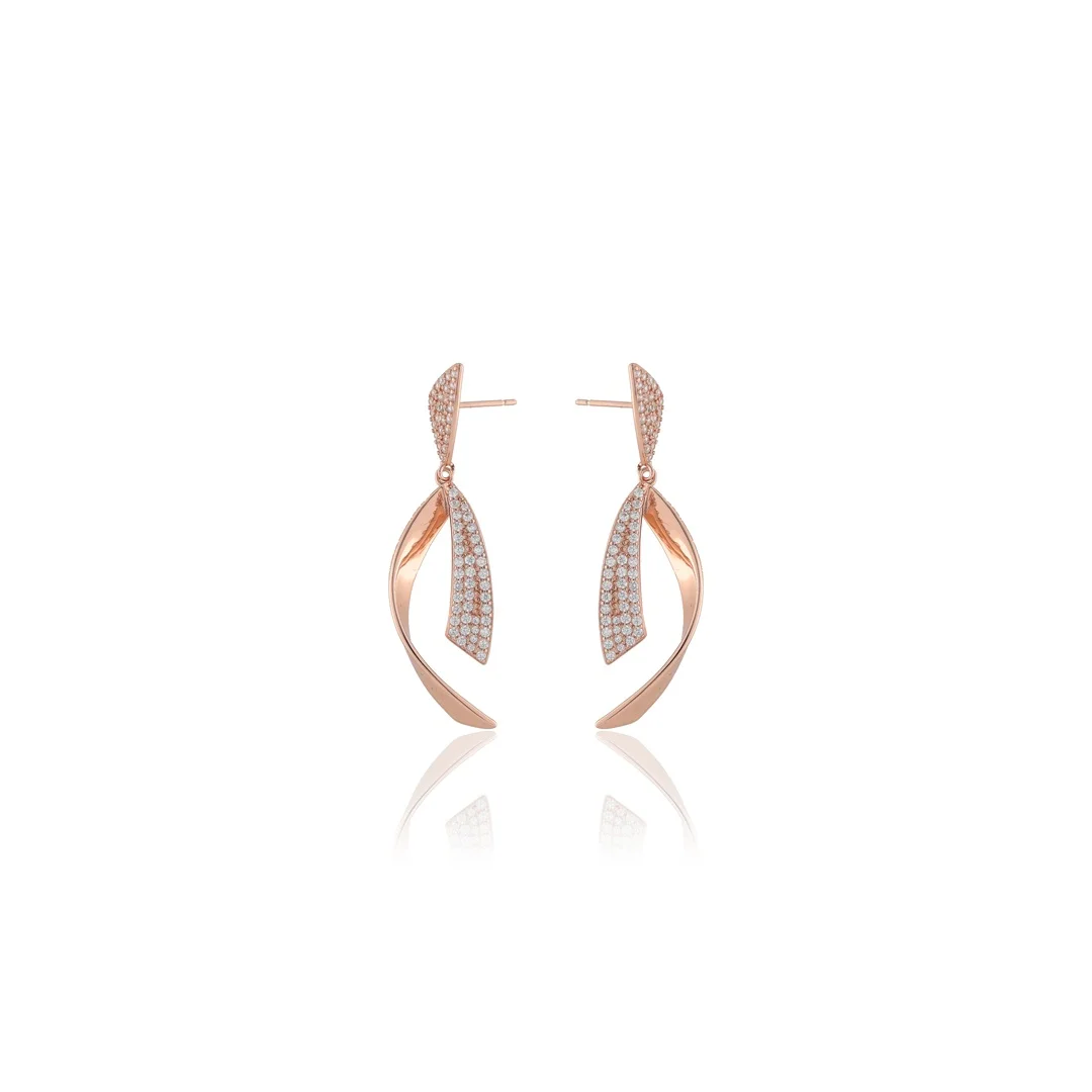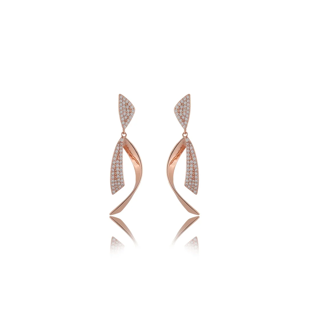 925 Sterling Silver Rose Gold Twisted Teardrop Design Earings For Womens