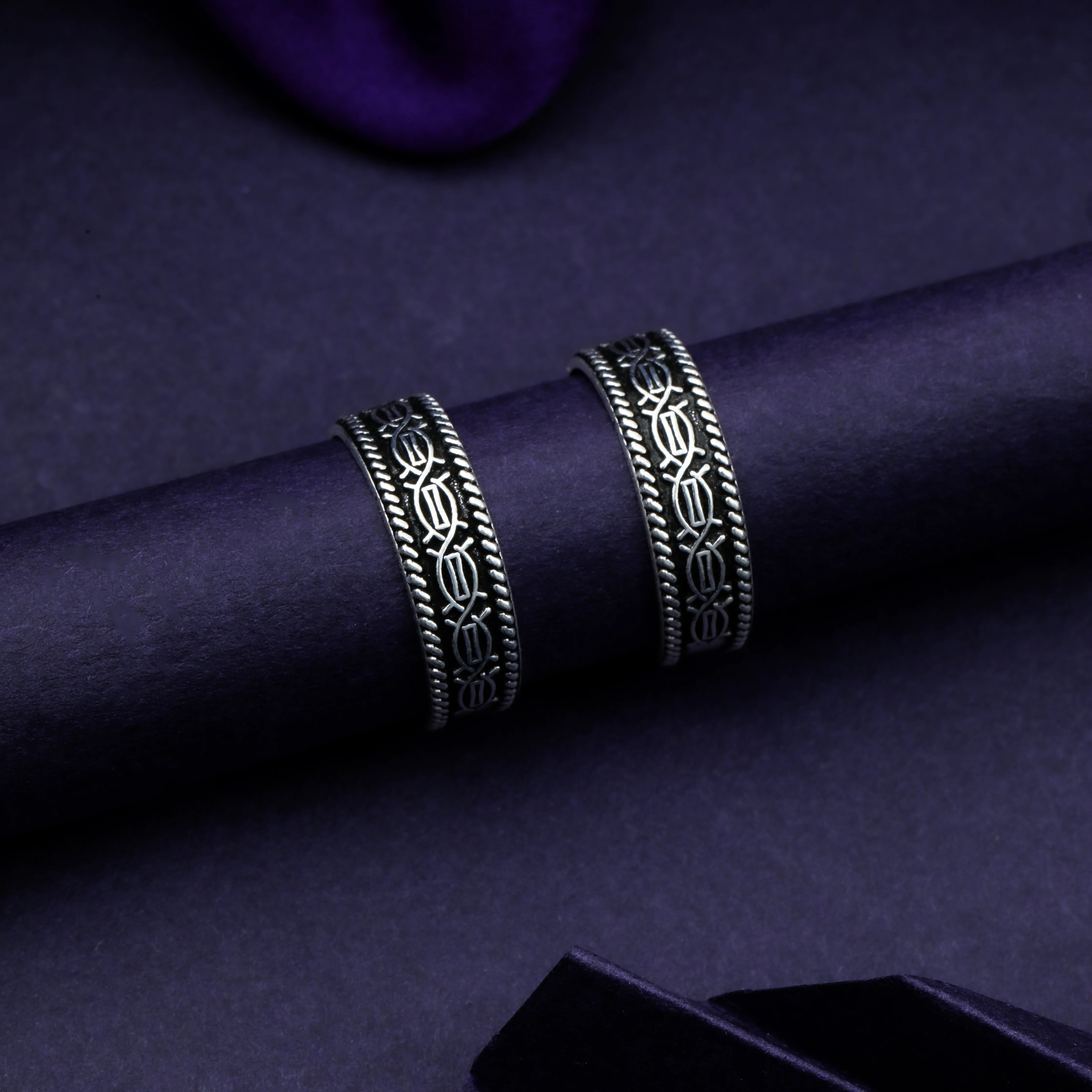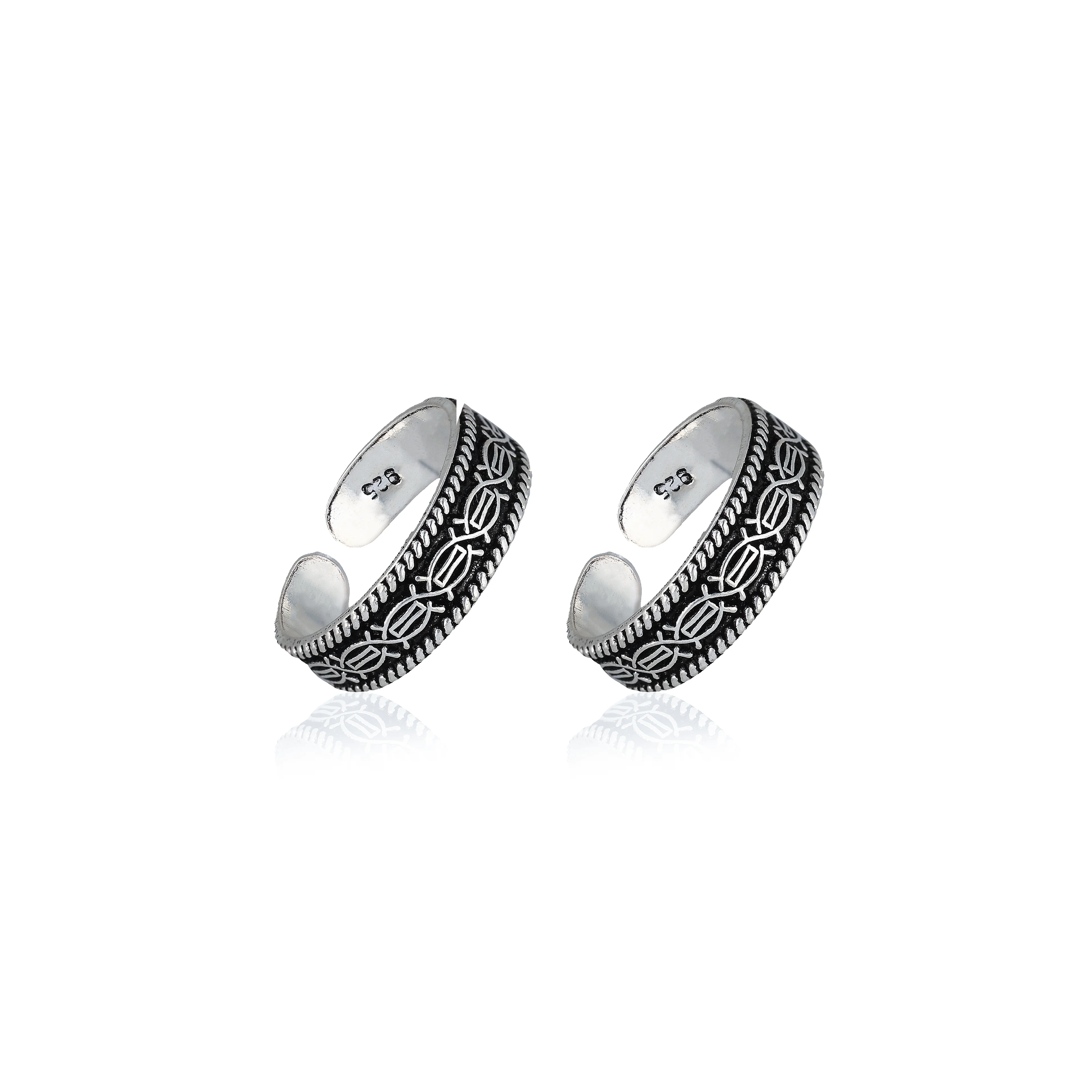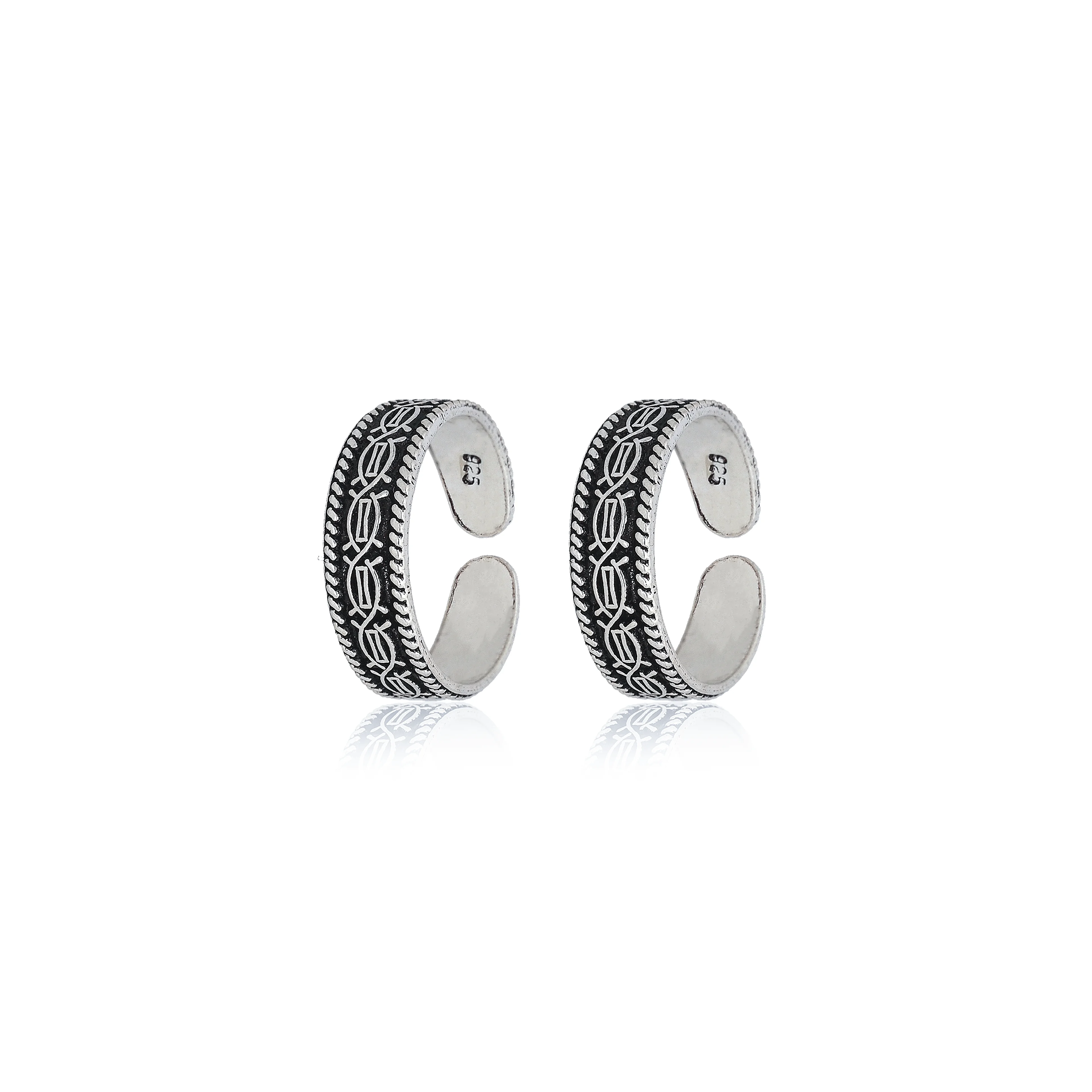 925 Sterling Silver Toe Ring With Oxidized Braided Pattern Design For Womens
