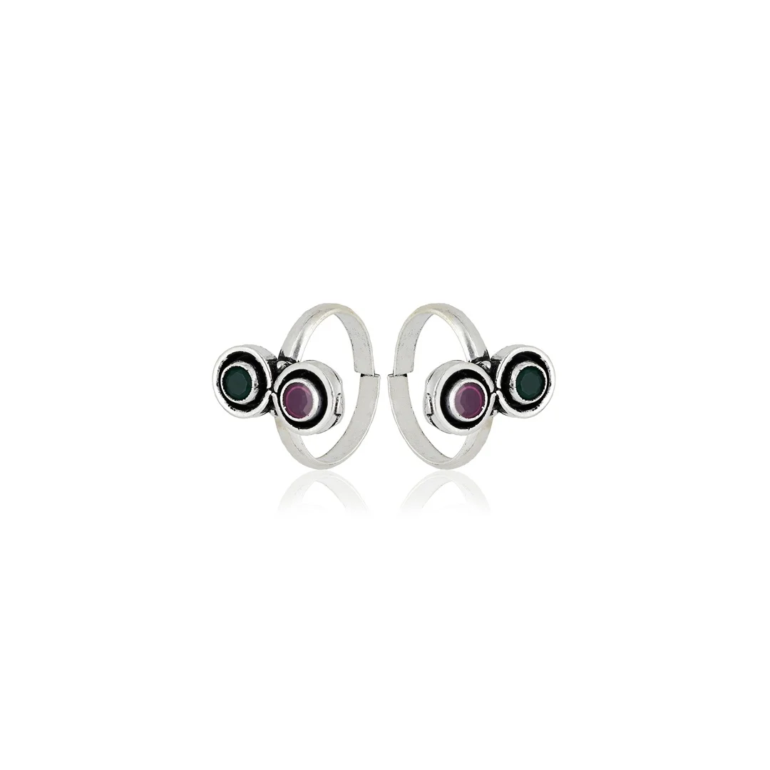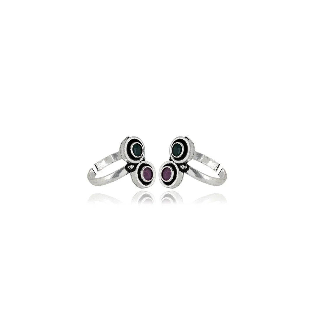 925 Sterling Silver Toe Ring With Pink & Green Stone Design For Womens