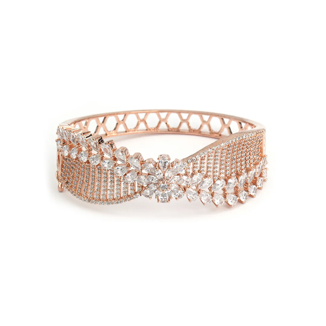 Crafted Bracelet With Multi Stone Studded And Rose Gold Polish For Women’s