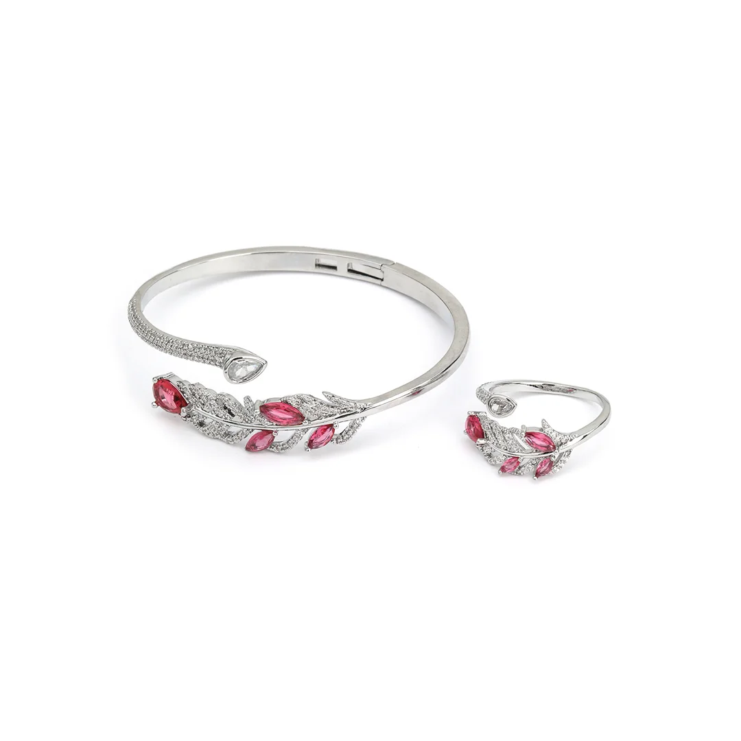 Crafted Bracelet With Ring & Feather Crystal Design For Women’s