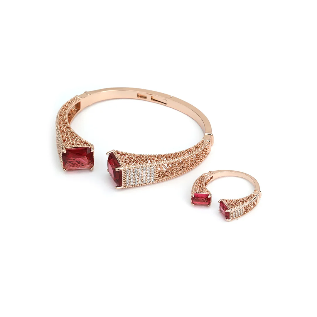 Crafted Bracelet With Ring & Rose Gold Square Stone Shape For Women’s