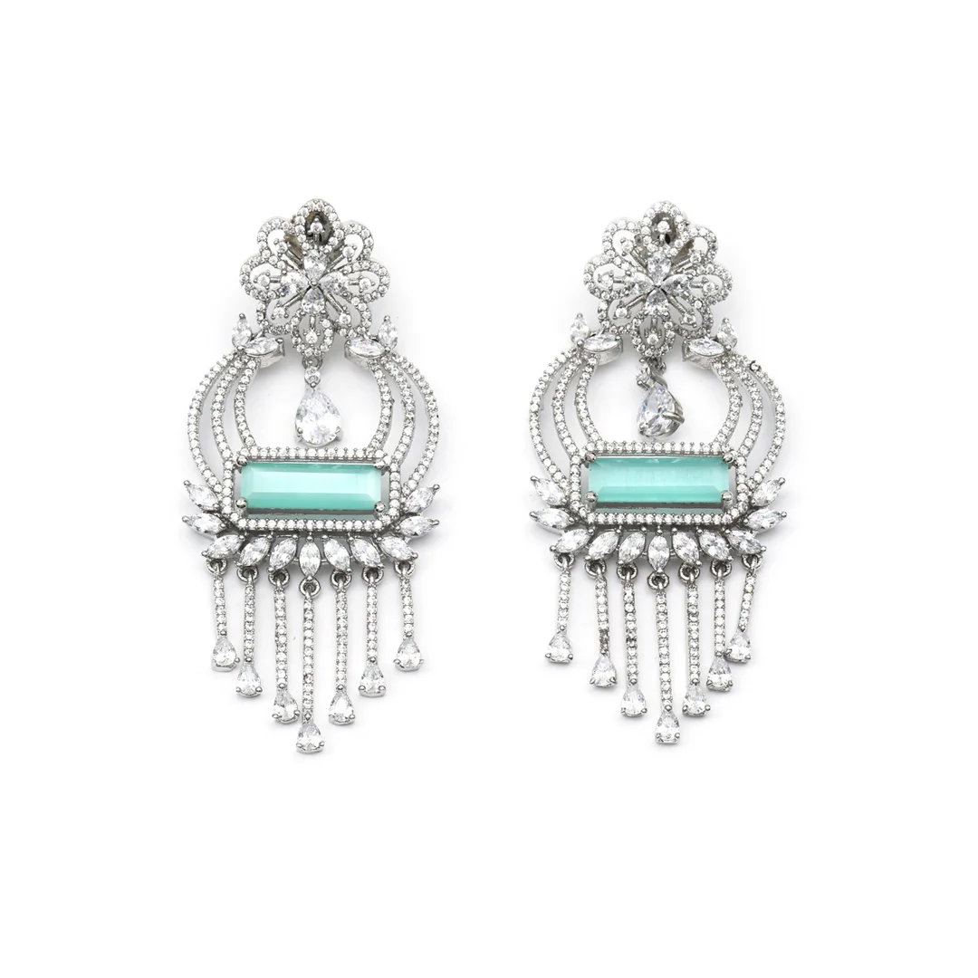 Crafted Earring With Mint Green Dangle Design For Women’s