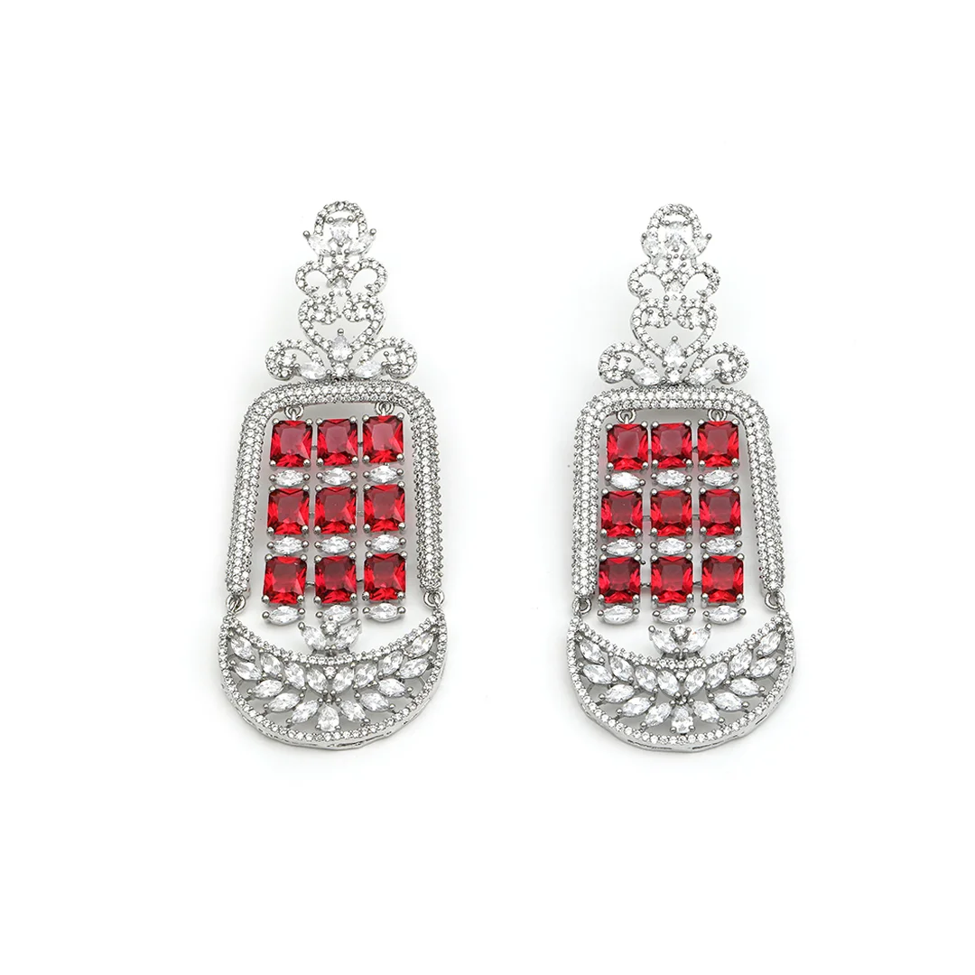 Crafted Earring With Ruby And Stones Studded With Drop Shape For Women’s