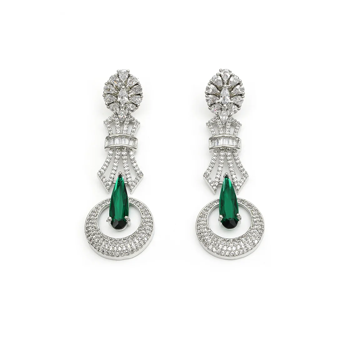 Crafted Earrings With Green White Stones Studded Circle Shape Design For Women’s
