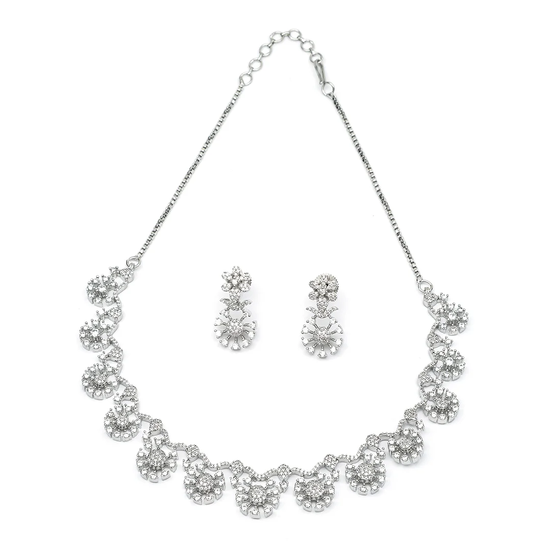 Crafted Necklace With Earring & Floral Crystal Set For Women’s
