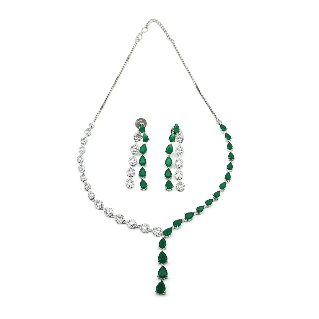 Crafted Necklace With Earring & Green With White Stones Set For Women’s