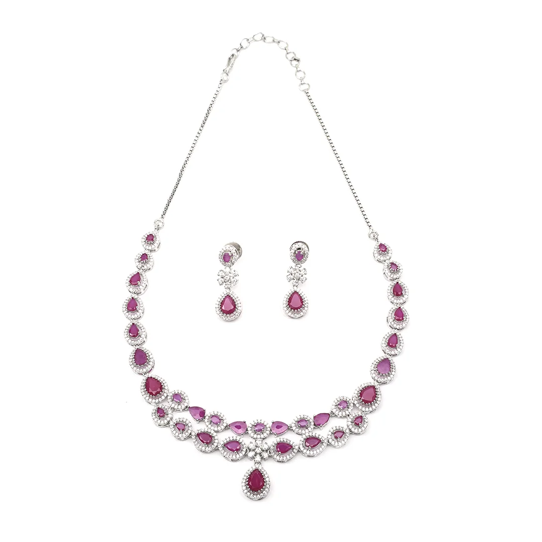 Crafted Necklace With Earring & Maroon & White Stone Studded Premium Set For Women’s