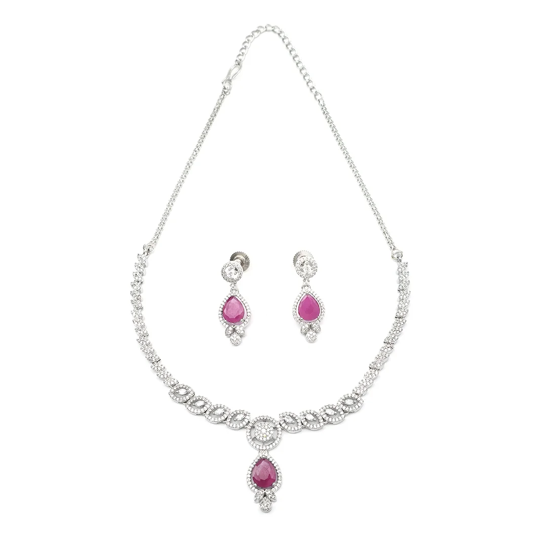 Crafted Necklace With Earring & Ruby Stones Teardrop Set For Women’s