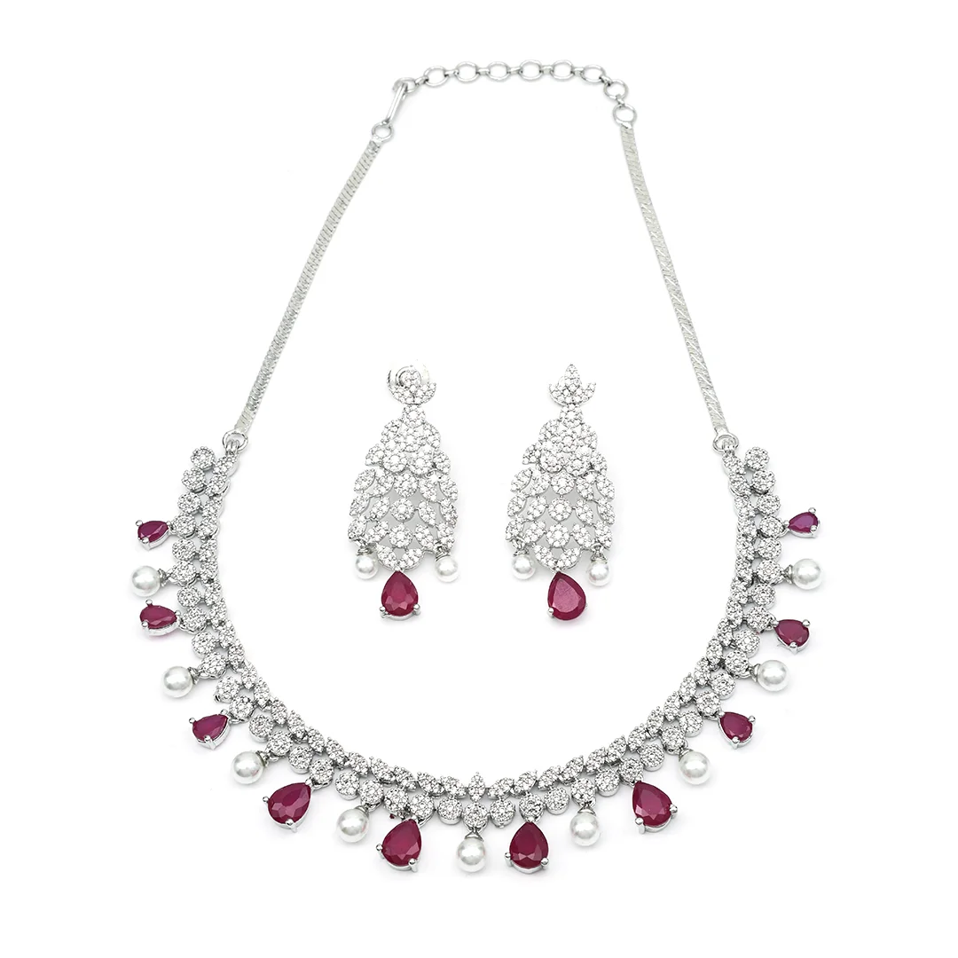 Crafted Necklace With Earring & Teardrop Ruby Stone Set For Women’s
