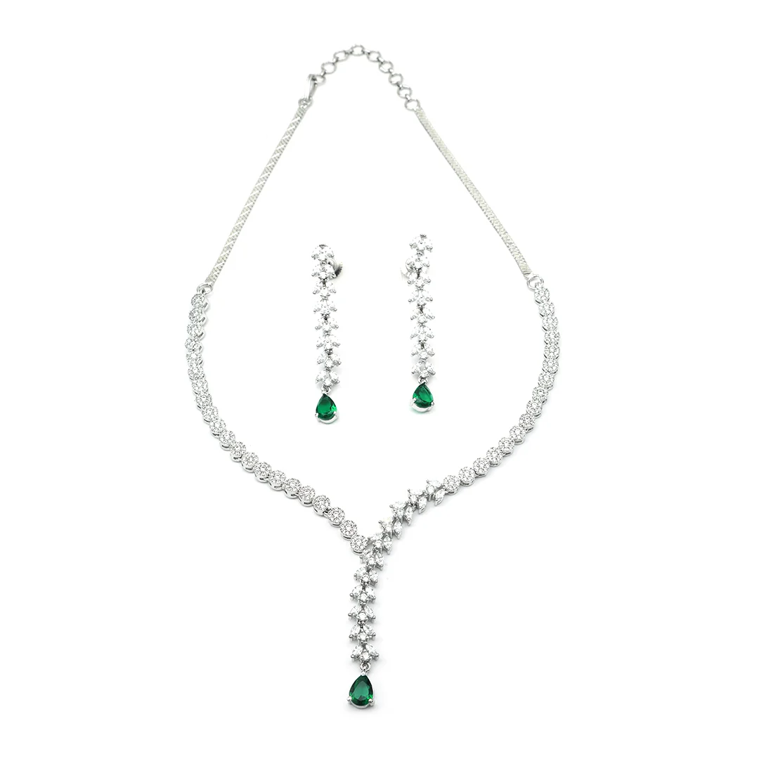Crafted Necklace With Earring & White And Green Stone Turkish Set For Women’s